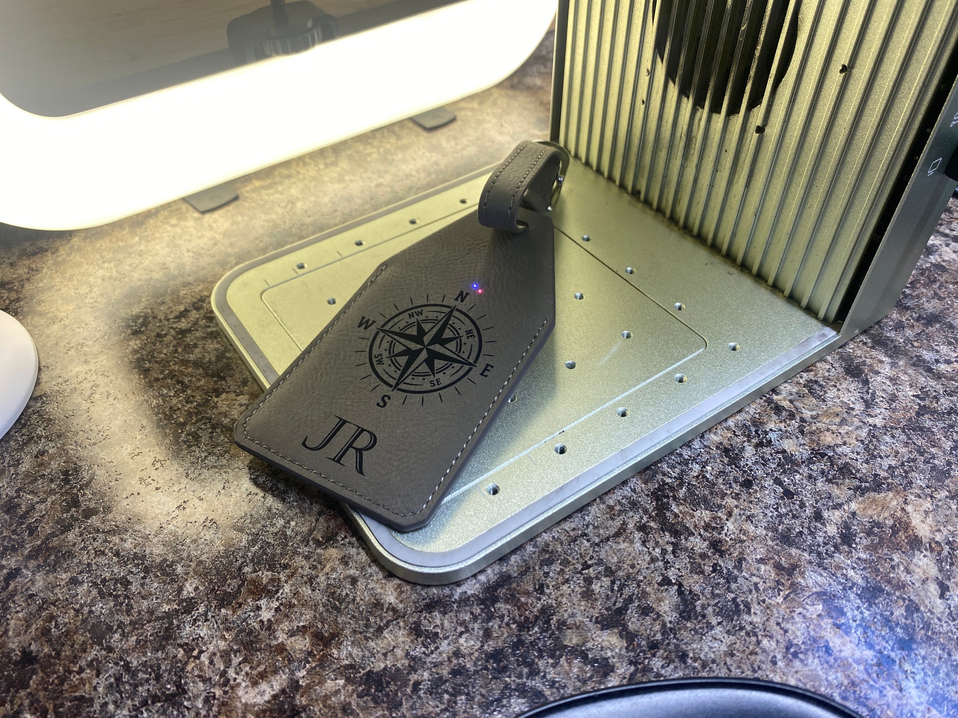 Travel in style with our Custom Engraved Leatherette Bag Tags, the perfect blend of elegance, durability, and personalization. Crafted from high-quality leatherette that offers the rich look and feel of genuine leather without the upkeep, these tags are designed to stand out while keeping your luggage secure. Each tag engraves beautifully, revealing a bold contrasting layer beneath the surface—perfect for names, initials, logos, or custom designs. A sturdy strap with buckle closure makes it easy to attach to suitcases, carry-ons, or duffels, ensuring your bag is always easy to identify at the airport, hotel, or event. ✨ Details: Material: Premium leatherette (laser-engraves with bold contrast) Durable strap with buckle for secure attachment Personalization: Add names, monograms, or logos Sleek and professional look for both personal and corporate travel Perfect for: Frequent travelers, wedding parties, corporate gifts, or fundraisers Whether gifted to a bride and groom for their honeymoon, a team of employees heading to a conference, or a loved one with wanderlust, these travel tags are a practical keepsake with a personal touch.